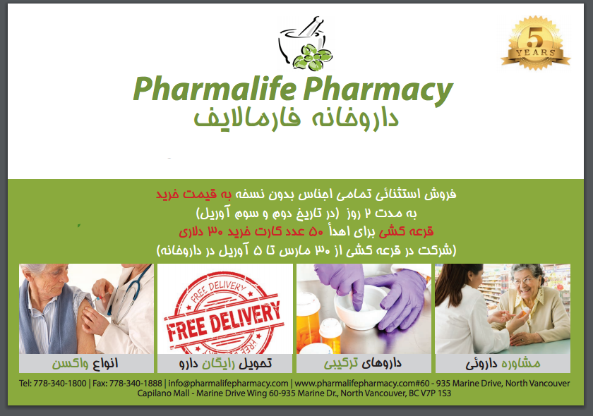 برای رفاه حال هم وطنان ، داروخانه فارمالایف ۷ روز هفته باز میباشد